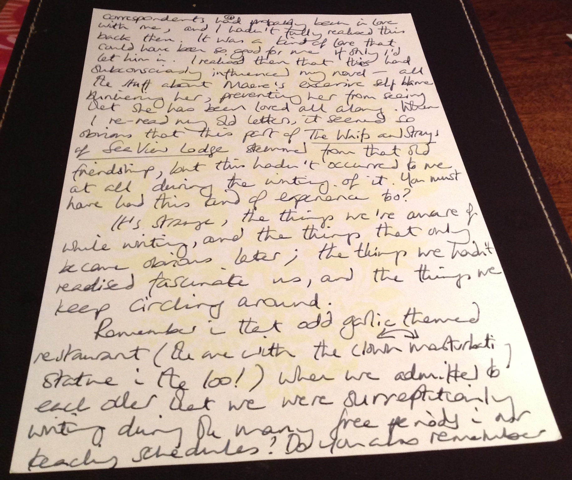 The letter itself became a kind of meditation on the lost art of letter writing: the way in which the pen can explore ideas too difficult for the tongue; the eye can receive ideas too difficult for the ear.